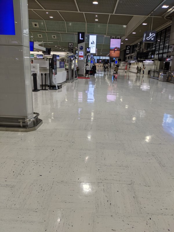 約6時間のフライトを経て空港に着くと、機内とは違って少し緊張感が漂ってました。深夜にも関わらず、防護服を着た職員がテキパキと乗客を誘導していきます。辺りは微かに塩素の臭いがしました。