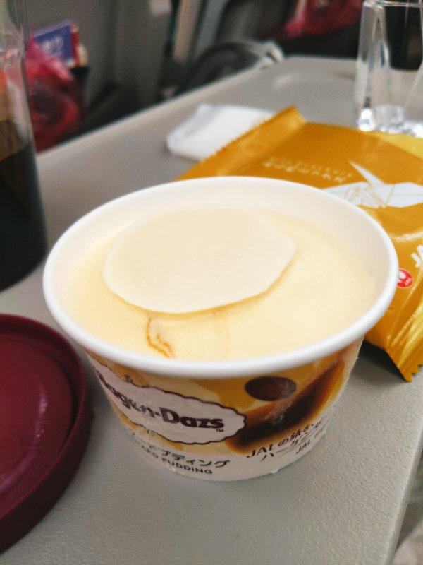 デザートはプリン味のハーゲンダッツ。カラメルソースも入ってて、大満足。