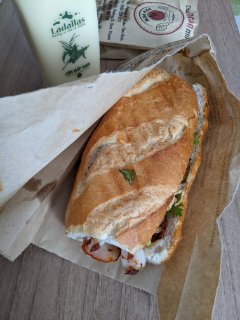 昼飯はバインミーと豆乳でした。ベトナムの豆乳は甘いのですが、これはこれで美味しいと思います。