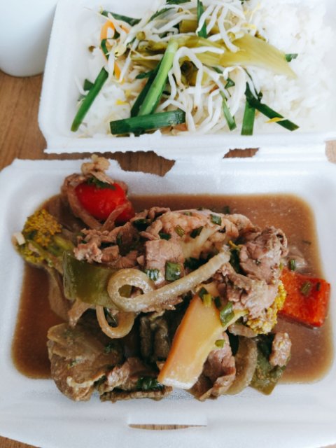昼は昨日の夜に頼んで冷蔵庫に入れておいた肉料理を食べました。漬物っぽい野菜とからめてあるので、発酵食品特有の酸っぱさがありました。これはこれで良いのですが、個人的には肉は塩や甘ダレで食べたいです。
