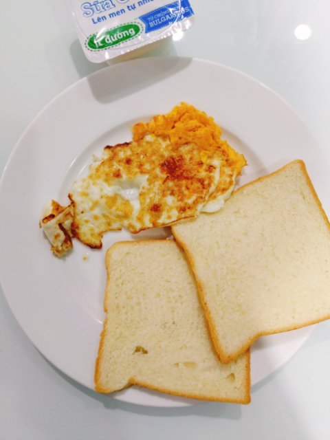 朝ごはんの目玉焼きです。過去に、半熟にしてお腹をこわしたことがあるので、ついつい焼きすぎてしまいます。
