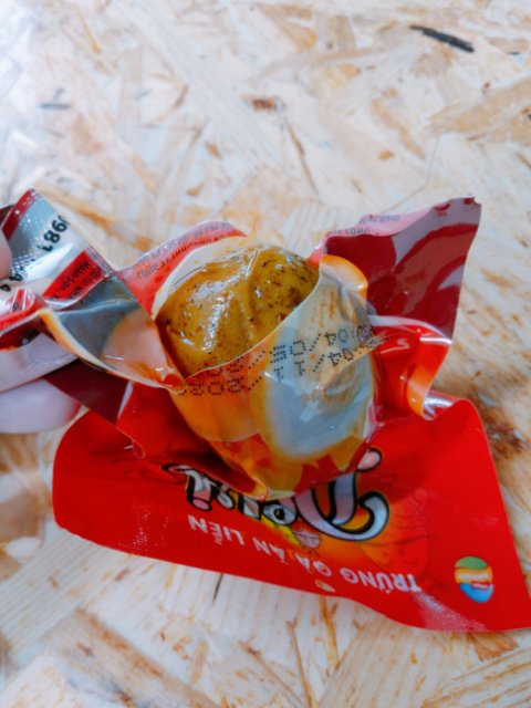 肉まんは60円くらいなので、日本より少し安いですかね。ココナッツフレーバーで、割ってみると、こんな風にウズラの卵入りなのも個人的にポイント高いです。ただ、味が若干薄めなので、塩か醤油を足したくなりました。