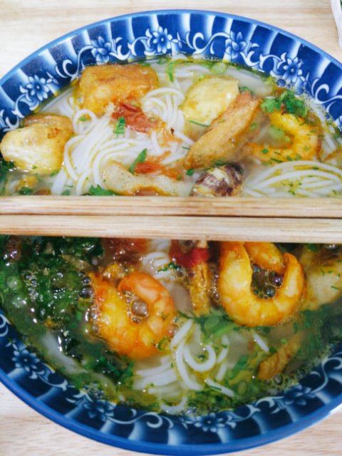 昼は海鮮麺でした。魚介の旨みが堪能できて、おいしかったです。