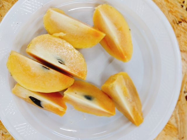食後に彼が「食べよう」と言って切ってくれたこの果物は、サポジラという名前でした。メキシコ柿とも呼ばれるらしく、確かに、敢えて何かに例えると、柿に近い気がします。