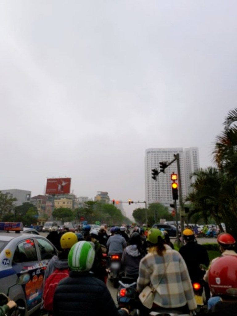 昨晩の緊急対応からの、寝不足からの、ちょっとハイになったまま出社です。こちら、朝の通勤ラッシュ。信号機はカウントダウン方式なんですが、ベトナムの皆さん、だいたい待ちきれなくて、3か2ぐらいで発進しちゃいます。