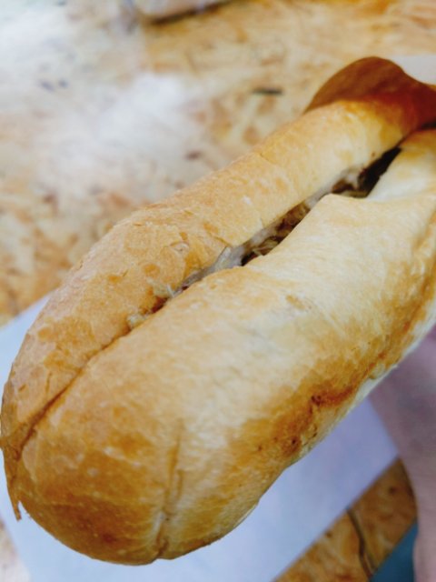 昼飯です。バインミーを2回に分けて食べると、眠くならずにいい感じです。