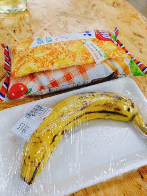 バナナが束で入ってたトレイを使って、1本だけ朝飯用に持ってきました。