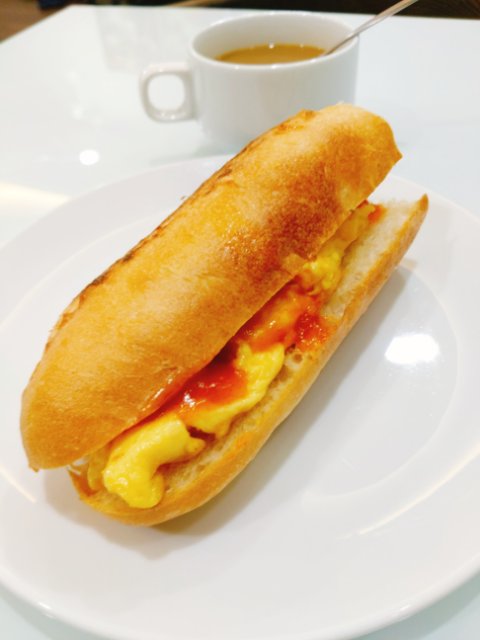 朝ごはんはパンとバナナです。バナナはバッグの中で潰れてもいいように、一応ラップしてます。