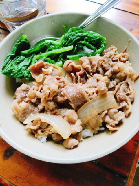 昼ご飯の牛丼です。4万5千ドン(約210円)でした。数ヶ月前は3万ドンくらいだった気が…
