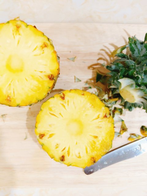 家に帰ってから、昨日買ったパイナップルをさばいてみることにしました。