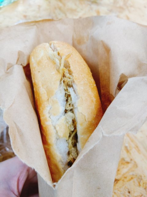 朝ごはんのパンです。よく見ると、右上に日本語が書いてます。