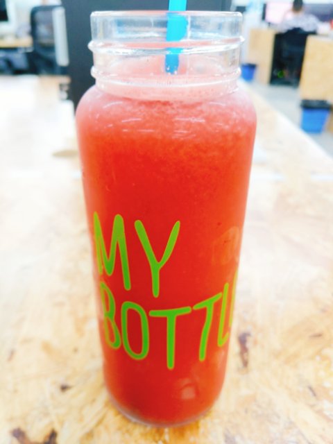 午後、ビルのスタッフが、突然スイカジュースをくれました。「なんだろう?」と戸惑ってたら、メンバーが僕のために頼んでくれたようで、後ろでニコニコしてました。昔、バーのコントでよく見た「あちらのお客様からです…」を思い出して、粋なことするなあと思いました。