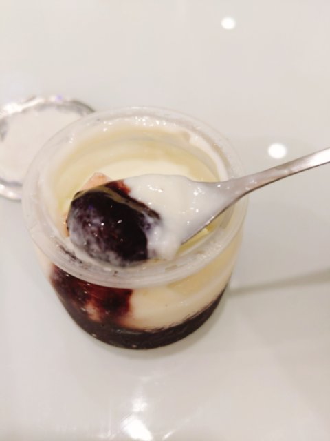 二段構成の上はヨーグルトになってて、下には、少し甘みがあって、弾力性のある赤い餅米が入ってます。