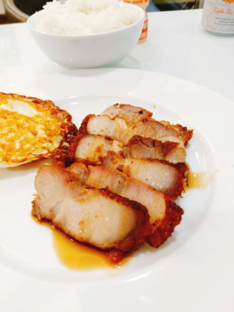メインのおかずは市場のポークです。ベトナムで食べた旨いものの中で、3本の指に入るくらい最高でした。