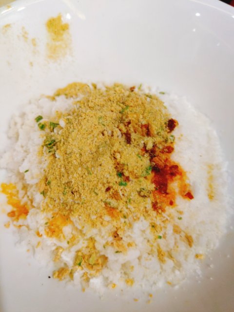 中身はこんな感じで、お粥の元とトッピングの粉末が入ってます。