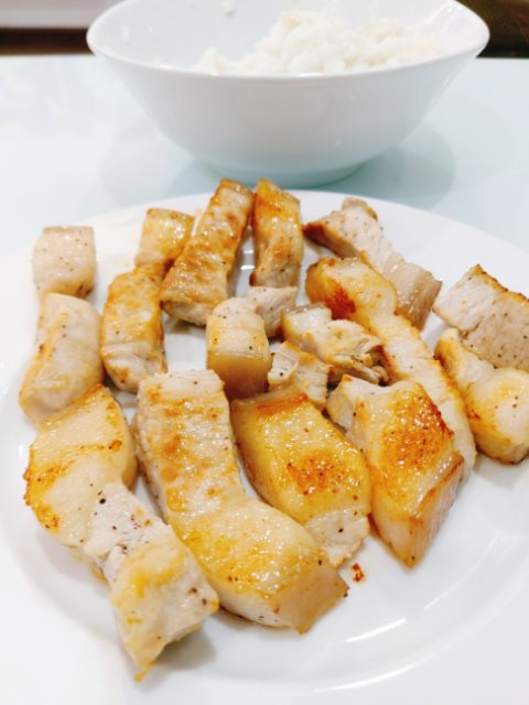 市場のポークは脂身も結構含んでたので、これくらいの脂身はいけるかな?