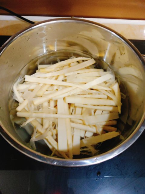 最後にタケノコも一緒に炒めて、塩コショウを適当に振ったらできあがり。