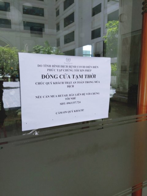 ハノイ市内の飲食店はまだこの状態です。(ĐÓNG CỬA TẠM THỜI<ドン クァ タム トァイ>一時閉店)