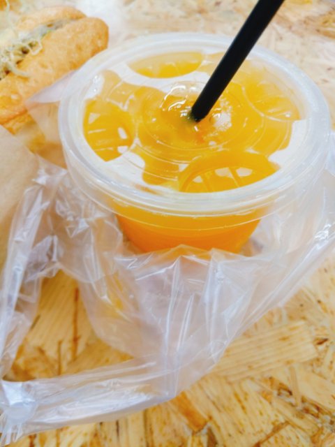 搾りたてのオレンジジュースは最高でした。たまに飲むビタミンサプリと同じ味がしたので、きっとビタミンCがたっぷり入ってたんだと思います。(約120円)