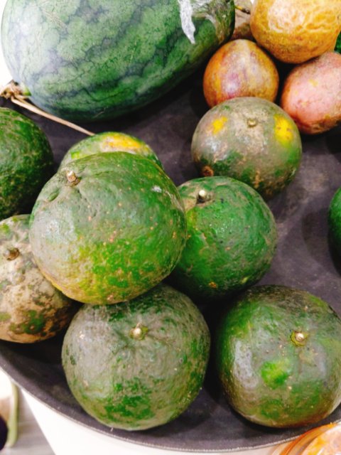ソーセージ・バインミーだけ頼んで突っ立ってたら、お姉さんが英語で「オレンジジュース飲む?」と聞いてきました。「おっと、お姉さん英語話せるなんて知らなかった」と思いつつ、試しにオーダーしてみました。カウンターに置いてあるこの緑のやつがオレンジで、見た目はいまいちですが、、