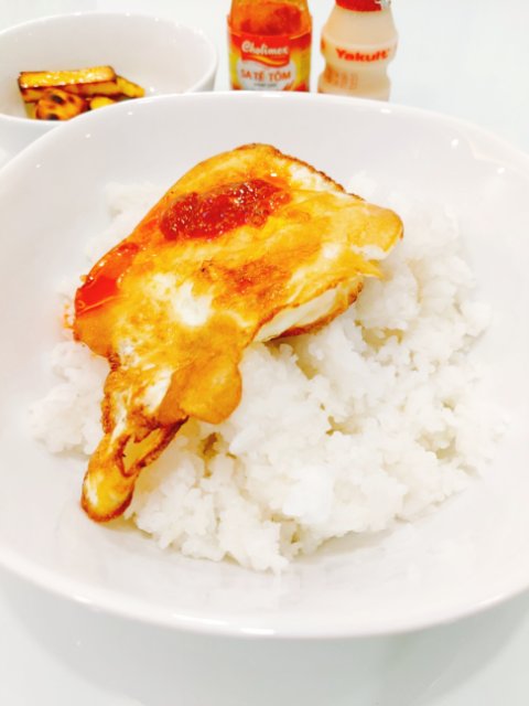 夕飯は余ってた白米に目玉焼きとサトテムを乗せた男飯でした。