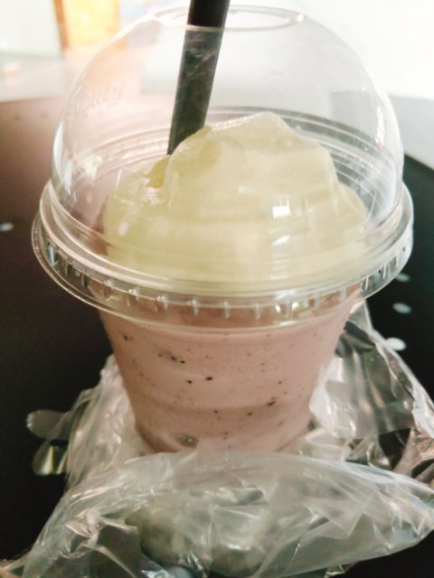 喫茶店で適当にViệt quất<ビエッ クワット>(ブルーベリー)と書かれたドリンクを頼んだらシェイクが出てきました。