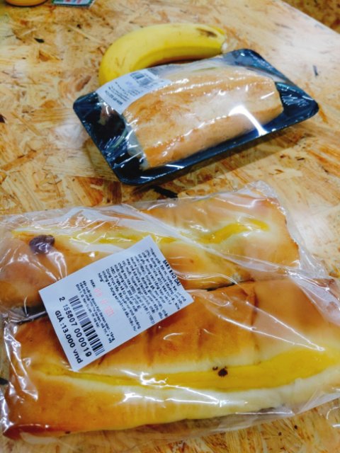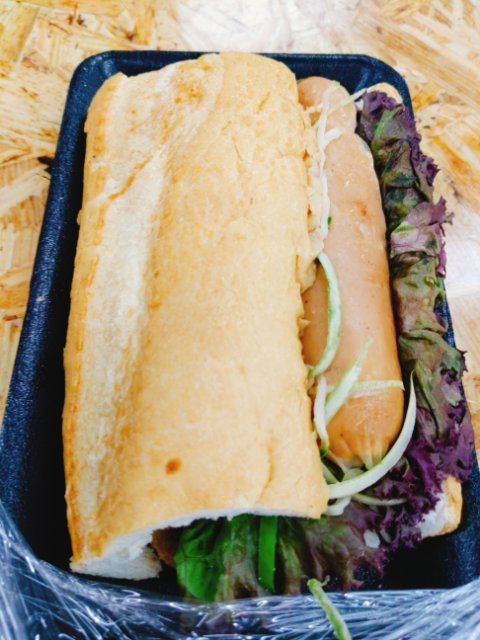 朝飯はソーセージ・バインミー。温めて食べればよかった。