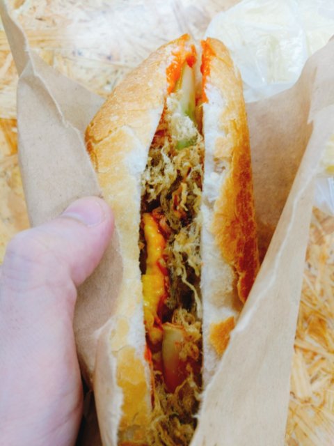 最近、加工肉が体に良くないという動画を見て、今日は卵バインミーにしたんですが、結局、田麩(でんぶ)という加工肉が入ってました。