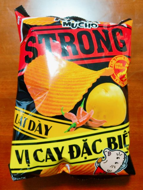 この形状は日本にも確かありましたね。小さいスティック状の方が有名だと思いますが。あと、ベトナム人向けに若干ローカライズされてるのかな?唐辛子パウダーが日本より少なく、何となく、ベトナム料理のスパイスが使われてるような感じもしました。