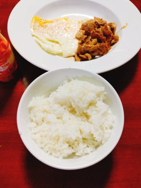 夕飯は冷凍してあった豚肉です。醤油と胡椒で下味をしっかりつけたらうまくできました。小間切れ肉の方が火が通りやすく、柔らかいままで食べられるので、今度からこれ買おっと。