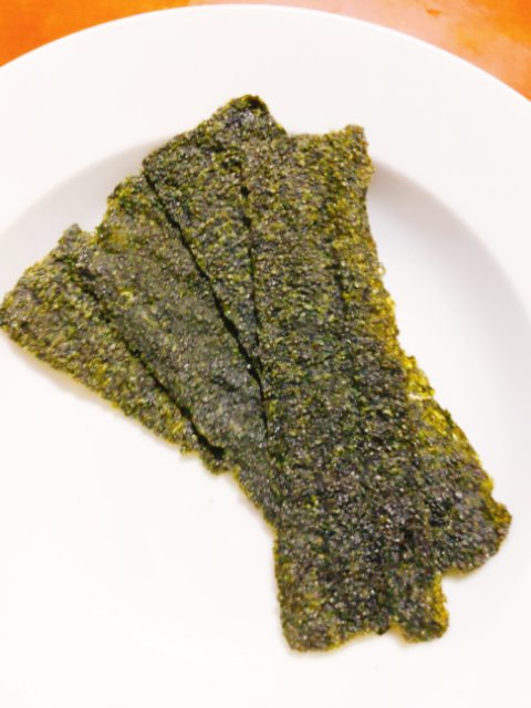 韓国海苔かな?日本の海苔より網目が細かくて食感がしっとりしてました。年齢のせいか、おつまみでさえ、少しでも体に良さそうなもの選んじゃいますね。
