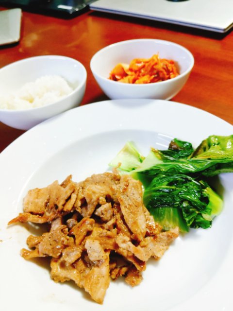 なんてことはない夕飯ですが、豚肉の焼き加減とか味付けとかいい感じにできると楽しい気分になります。