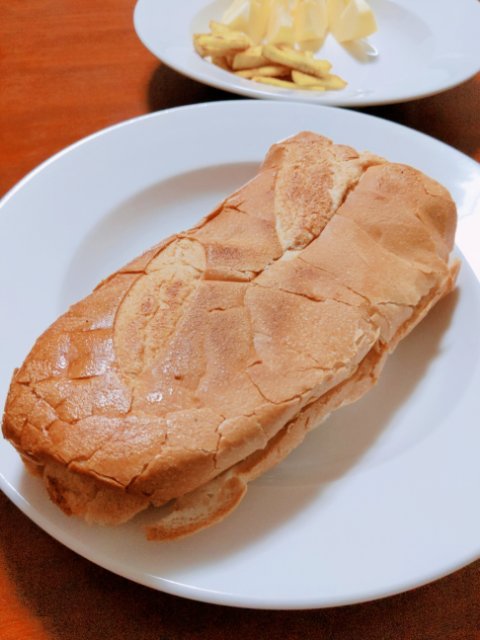 帰宅後、午後の仕事を終えてから、夕飯にバインミーを作りました。スリッパみたいですが、味はうまかったです。