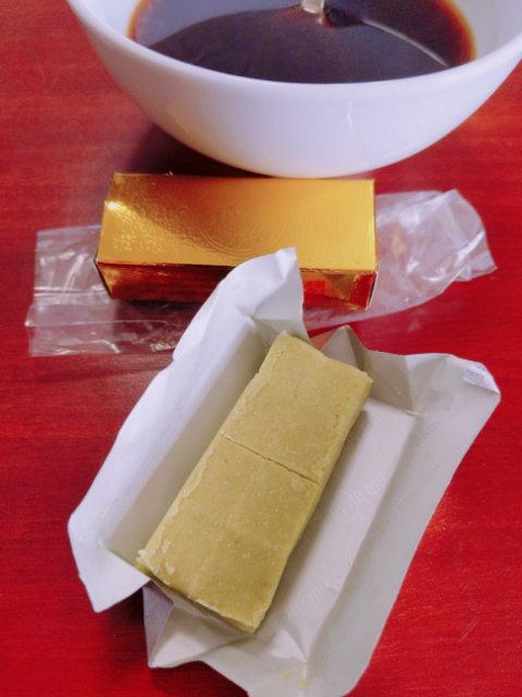 疲れたので、おやつタイム。今頃気づいたのですが、最近のお気に入りの「緑豆菓子」は抹茶味かも。(記事の最後に紹介リンクはっておきます)