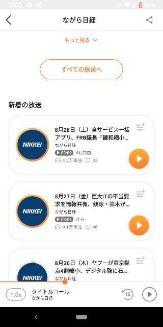 まだ使いこなせてないんですが、この写真は日経の記事を読み上げてくれるチャンネルです。「ながら日経」という名前の通り、家事をしながらでも情報収集できるので便利です。