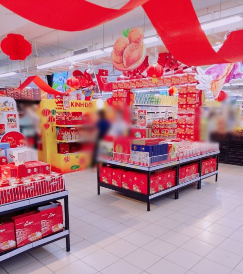 仕事が終わってからスーパーに行くと、まだ国慶節(建国記念日)の飾り付けが残ってました。ベトナムでは、クリスマスなどの行事が終わってもすぐに片付けないのは知ってましたが、これもそうなんですね。