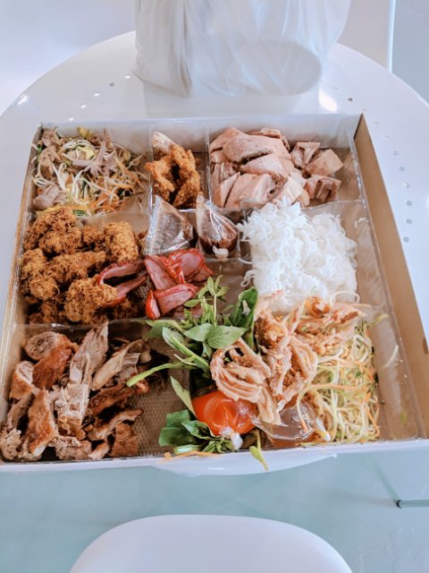 あるプロジェクト内でメンバー交代がありそうなので、皆で鴨肉料理をデリバリーして食べました。ベトナムでは、ちょっと奮発したいときに鴨肉を注文するようです。5人で約3,000円だったので、それでも1人600円程度ですが、ベトナムの物価からすると高級品ですね。