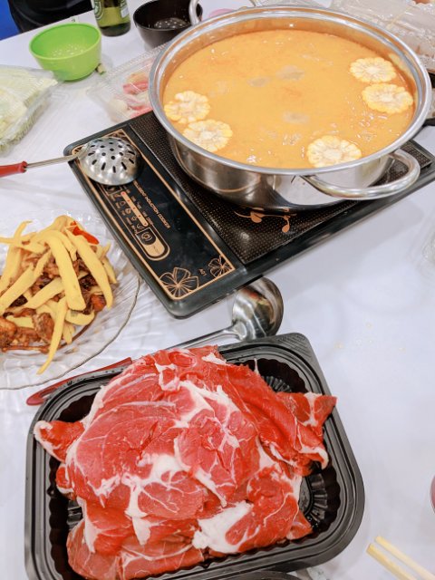 ちなみに、鍋の横にあるのは蛙の肉の唐揚げとタケノコです。特に臭みもなく、鶏肉みたいでした。