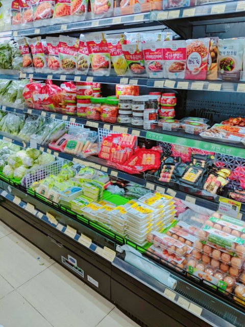 夕方から行きつけの韓国コンビニへ。お目当ては中段の奥にあるキムチです。