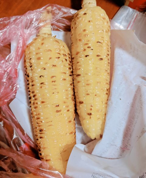 つまみは、いつものおばちゃんのトウモロコシなど。