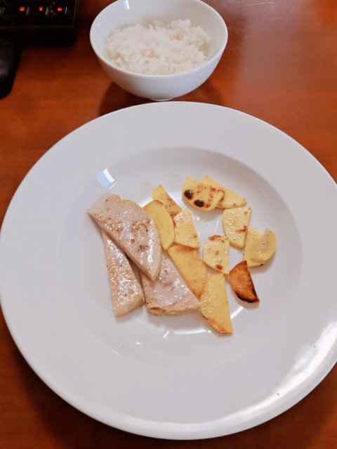 昼飯です。暴飲暴食が続いたので粗食に戻します。