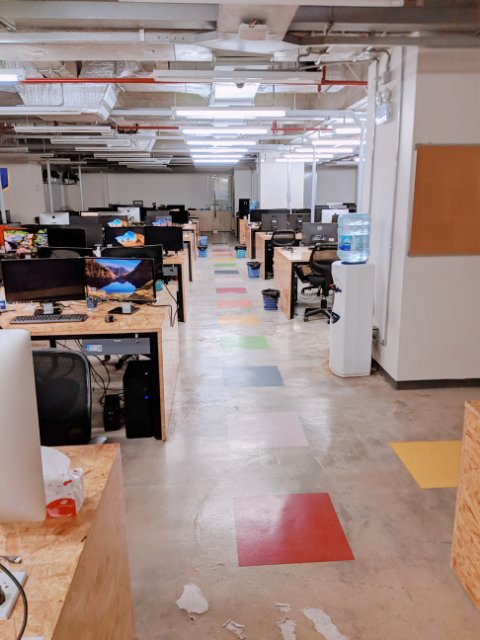 皆とオンラインでミーティングする際、わざとオフィスの中を撮したり、チャットツールにビルのクリスマスツリーを投稿したりしてます。