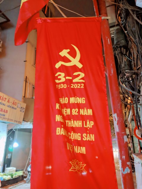 テト(旧正月)前だからかな?あちこちで国旗や党旗が掲げられてます。