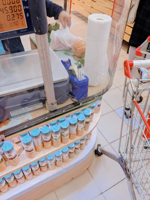 野菜や果物は計り売りなので、レジの前にここで計量してもらいます。