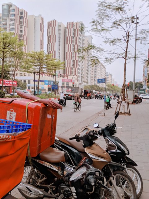 行商のおばちゃんかな?普通にチャリで道路走ってます。(ベトナムでは普通)