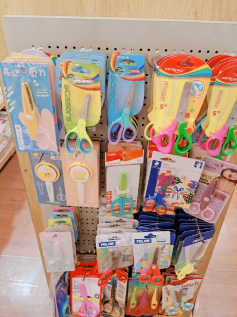 日本のイオンとかだと、1階の雑貨コーナーの一画にハサミくらい置いてそうですが、、、