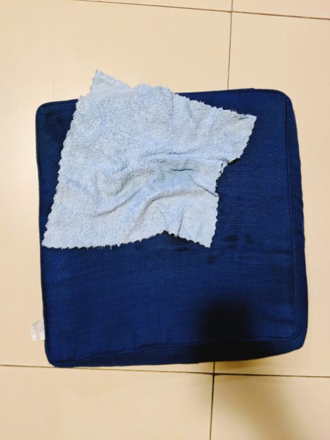 (腰痛持ちなので)愛用してる低反発座布団、、たぶん、洗濯機に入れてはいけないと思いますが、ずっと洗ってないし、いい機会だし、明日洗ってみます。