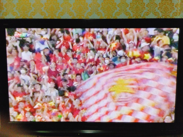 TVつけたら、「ベトナム 1-0 タイ」だったので、おそらく、さっきの歓声はベトナムが得点したタイミングだったのでしょう。
