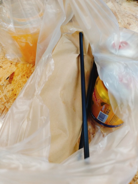 搾りたてのオレンジジュースとバインミー、それとレッドブル。