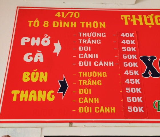 麺とスープの組み合わせは、なんでもアリですよ、というベトナムでよくあるメニュー表。